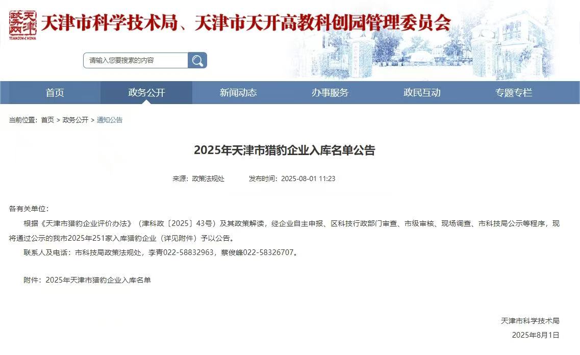 8月1日,天津市科學(xué)技術(shù)局公布了《2025年天津市獵豹企業(yè)入庫(kù)名單公告》。在渤化集團(tuán)、南開區(qū)科技局的大力支持下,我公司成功獲評(píng)入庫(kù)“天津市獵豹企業(yè)”。
