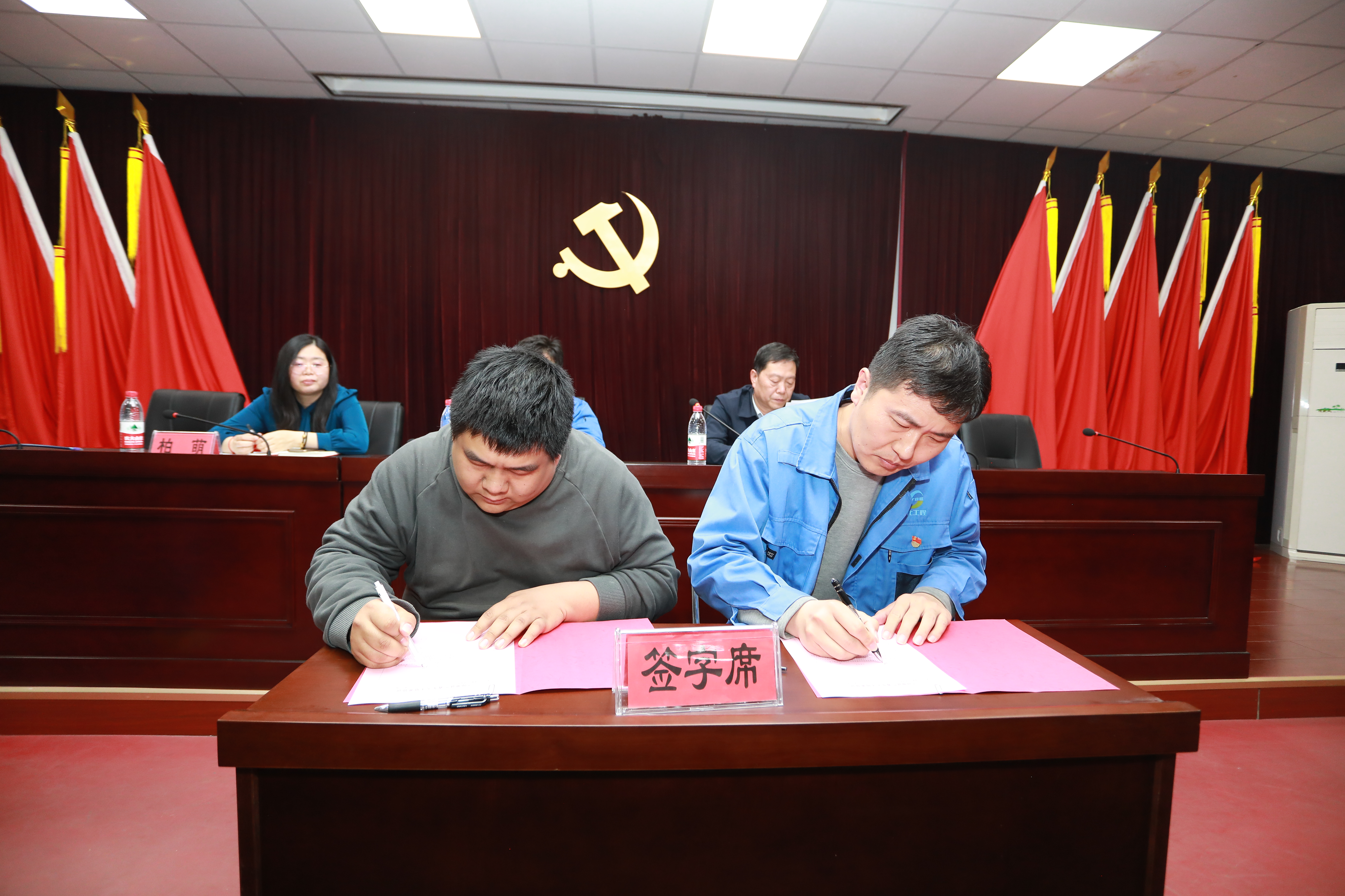 公司領(lǐng)導(dǎo)為培訓(xùn)導(dǎo)師代表頒發(fā)培養(yǎng)導(dǎo)師聘書(shū),師徒代表在現(xiàn)場(chǎng)簽訂培養(yǎng)任務(wù)書(shū)。