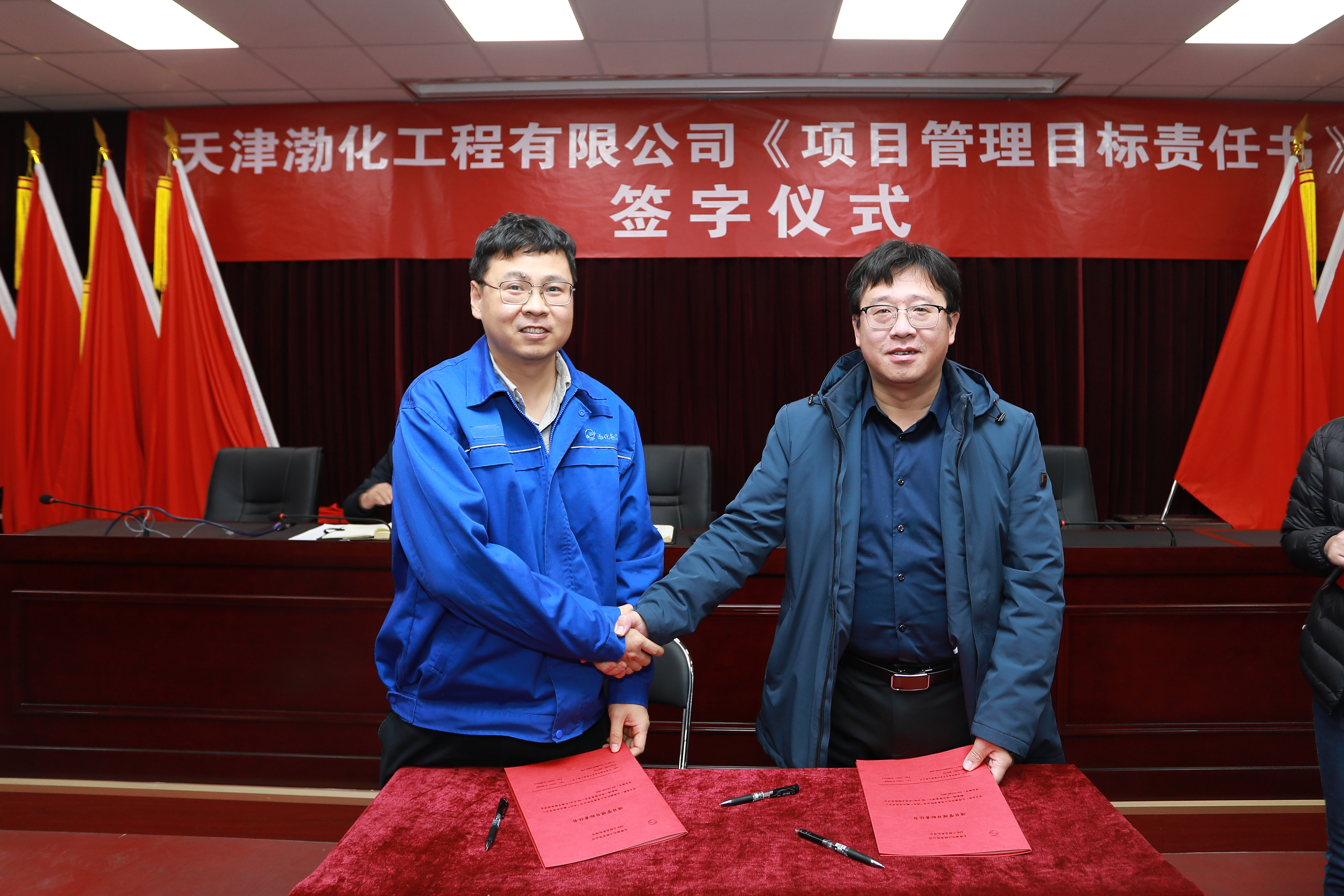 會(huì)上,黨委書記、董事長(zhǎng)詹宏智與“兩化”二期30萬(wàn)噸/年離子膜燒堿項(xiàng)目、渤化發(fā)展綜合實(shí)驗(yàn)樓EPC總承包項(xiàng)目、渤化發(fā)展12萬(wàn)噸/年糊樹脂裝置項(xiàng)目的項(xiàng)目經(jīng)理簽訂了《項(xiàng)目管理目標(biāo)責(zé)任書》。