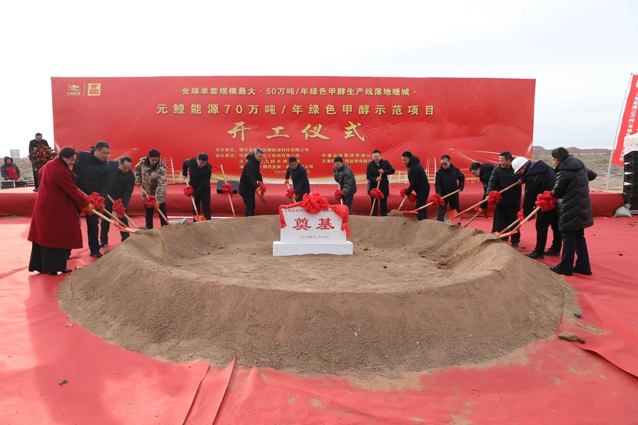 投資25億元!渤化工程設(shè)計的70萬噸綠色甲醇示范項目開工奠基 2024-12-20 09:34:43 12月18日,由天津渤化工程有限公司承攬設(shè)計的元鰉能源年產(chǎn)70萬噸綠色甲醇示范項目,開工奠基儀式在鄂爾多斯順利舉行。天津渤化工程有限公司黨委書記、董事長詹宏智受邀參加,并代表設(shè)計方表態(tài)發(fā)言。鄂托克旗旗委副書記、政府旗長蘇智雄,浙江中科應(yīng)用技術(shù)研究院院長陳秋榮,鄂爾多斯應(yīng)用技術(shù)學(xué)院副校長姜鑫,內(nèi)蒙古林草生態(tài)建設(shè)有限責(zé)任公司副總經(jīng)理戴昂勤,上海馭唐新能源科技有限公司執(zhí)行董事、長江學(xué)者、國家萬人計劃趙紀(jì)軍出席。李志彪、白朝格吉樂圖、王小平、尤建兵、武永寧、高智及旗直屬相關(guān)部門、企業(yè)負(fù)責(zé)人參加。 元鰉能源年產(chǎn)70萬噸綠色甲醇示范項目,建設(shè)周期為18到24個月,總投資約為25億元。項目采用國際前沿、國內(nèi)頂尖的創(chuàng)新工藝,是全球單套生產(chǎn)規(guī)模最大的綠色甲醇項目、全國首個生物質(zhì)電甲醇項目,上聯(lián)生物質(zhì)種植、沙漠化治理等根基產(chǎn)業(yè),下合航運減碳、綠色化工新材料等新興領(lǐng)域,成功實現(xiàn)新能源從“無形”到“液化”的驚艷蝶變,是鄂托克旗能源綠色轉(zhuǎn)型征程中動力澎湃的新引擎,更是產(chǎn)業(yè)耦合升級棋盤上關(guān)鍵強韌的傳送帶。 詹宏智表示,渤化工程作為設(shè)計單位,將充分利用先進(jìn)的技術(shù)和理念,深入挖掘生物質(zhì)資源的潛力,致力于打造一個高效、環(huán)保且經(jīng)濟可行的綠甲醇生產(chǎn)體系。公司對原料預(yù)處理、合成工藝、產(chǎn)品精制以及節(jié)能減排等各個環(huán)節(jié),進(jìn)行反復(fù)的優(yōu)化和精細(xì)設(shè)計,確保每一個步驟都符合綠色化學(xué)原則和可持續(xù)發(fā)展的新要求,將項目打造成為“新質(zhì)生產(chǎn)力”的典型示范工程。他強調(diào),渤化工程高度重視項目的安全性和可靠性。從工廠布局到設(shè)備選型,從工藝流程到控制系統(tǒng),都嚴(yán)格遵循相關(guān)的安全標(biāo)準(zhǔn)和規(guī)范,進(jìn)行全面的風(fēng)險評估和防范設(shè)計,確保項目在未來的長期運行中,能夠穩(wěn)定、安全、環(huán)保地生產(chǎn)綠甲醇。