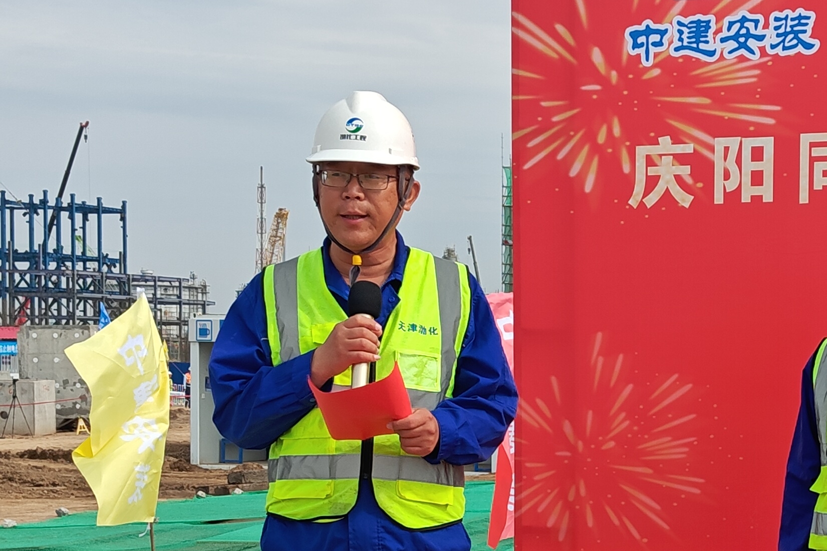渤化工程施工管理部部長李強(qiáng)匯報了項目進(jìn)展情況,自2024年11月開工以來,現(xiàn)場團(tuán)隊攻堅克難,打造冬季施工樣板工程,春節(jié)后響應(yīng)業(yè)主“百日攻堅”勞動競賽號召,明確安全、質(zhì)量等六大目標(biāo),土建施工、設(shè)備安裝等工作按節(jié)點穩(wěn)步推進(jìn)。李強(qiáng)表示項目順利推進(jìn)離不開中化學(xué)裝備科技公司團(tuán)隊的努力,101名工作人員11個月的堅守為反應(yīng)器制造高質(zhì)量交付和吊裝就位打下了堅實基礎(chǔ)。