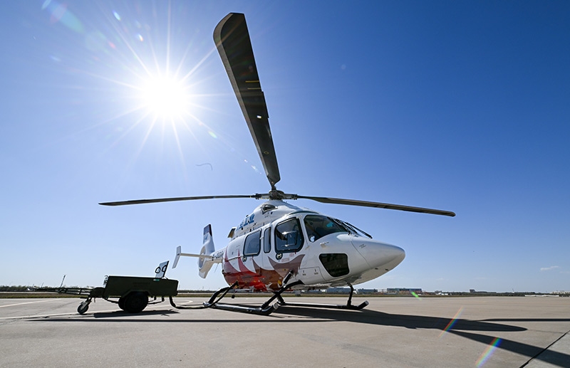 這是2023年4月7日在航空工業(yè)天津直升機(jī)有限責(zé)任公司停機(jī)坪拍攝的“吉祥鳥(niǎo)”AC332直升機(jī)。新華社記者 孫凡越 攝